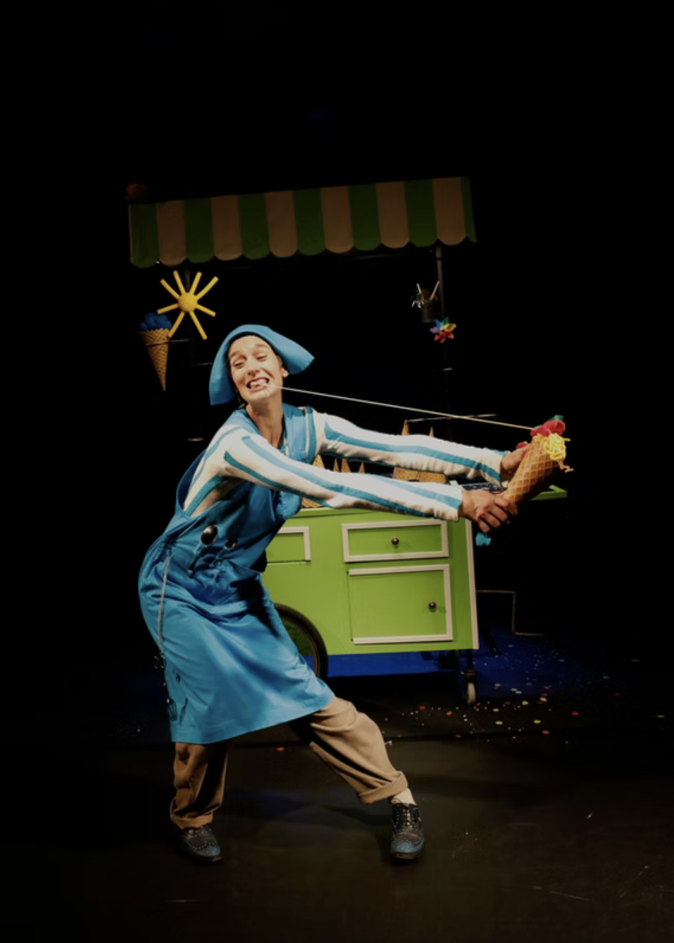 Dans la charrette de Pistache, il y a une sorbetière un peu particulière. Quand on en tourne la manivelle, il faut s’attendre à quelques étincelles. Car les glaces de Pistache prennent vie et n’en font qu’à leur tête. Ces personnages nous jouent des tours et nous emmènent en voyage. Et quand ils sautent en l’air, ils ne laissent sur le vêtement de Pistache, qu’une tache. « T’as une tache, Pistache ! Elles auront plus d’un tour dans leur gaufrette, mais je les aimerai beaucoup quand même. »